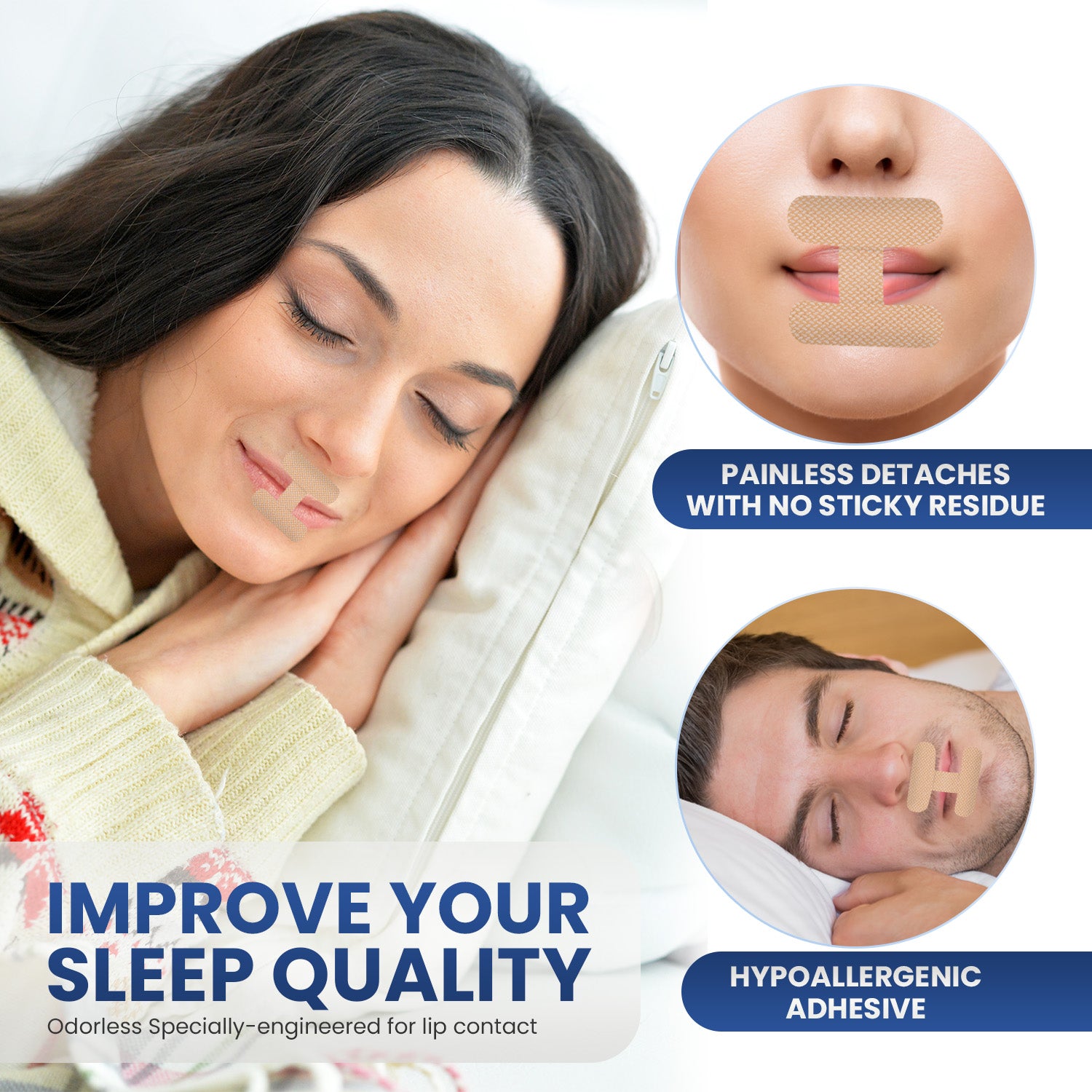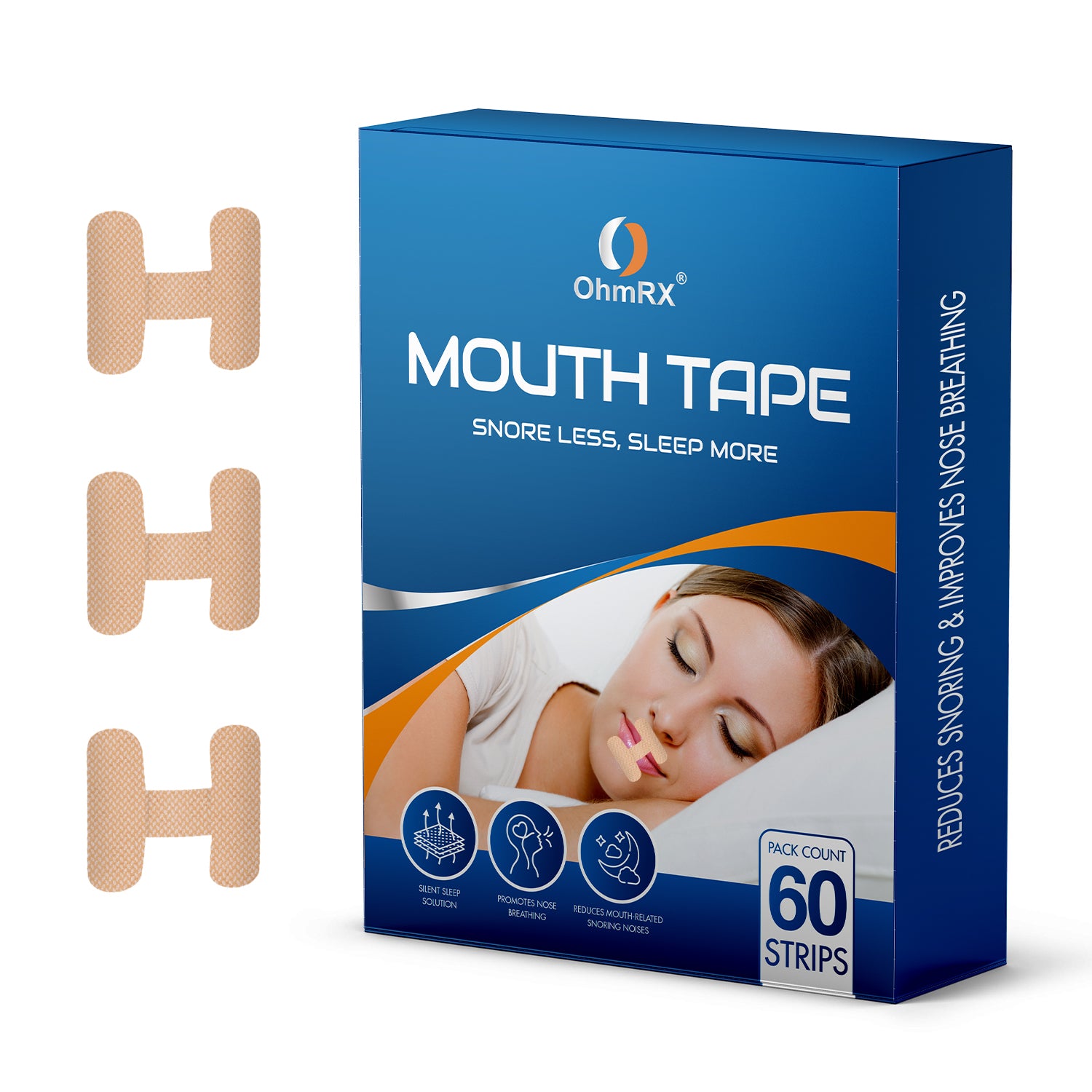OhmRx Mouth Tape - 60 PCS, H Shape, Tan - Premium Sleep Aid - Mild Adhesion