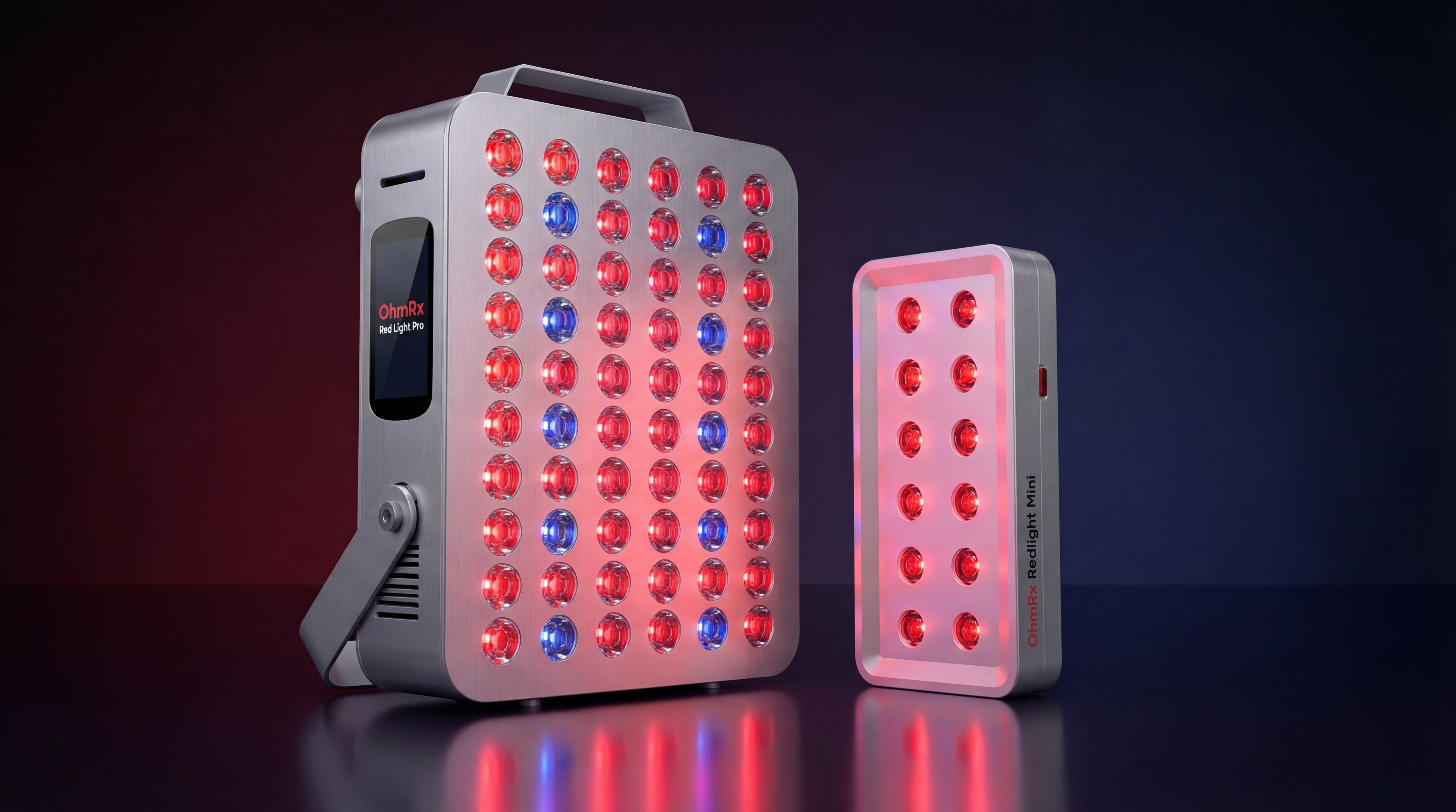 A: The Mini Pro uses two targeted wavelengths. The Pro Panel offers seven adjustable wavelengths for deeper, full‑body coverage.