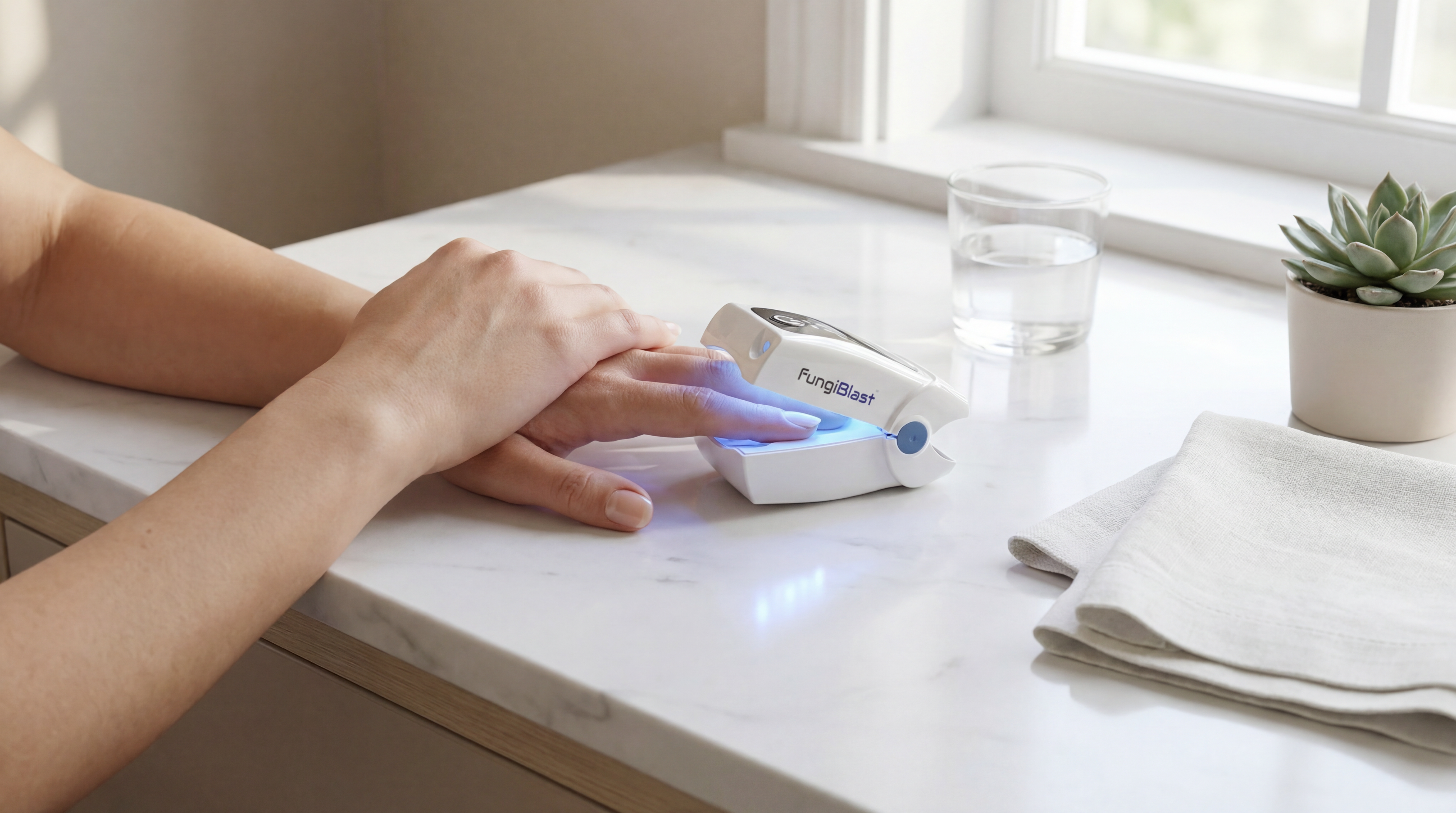 FungiBlast™ Compact Nail‑Care Light Device Gentle LED illumination designed to support the appearance and wellness of nails. Portable, rechargeable, and easy to use for daily nail‑care routines.