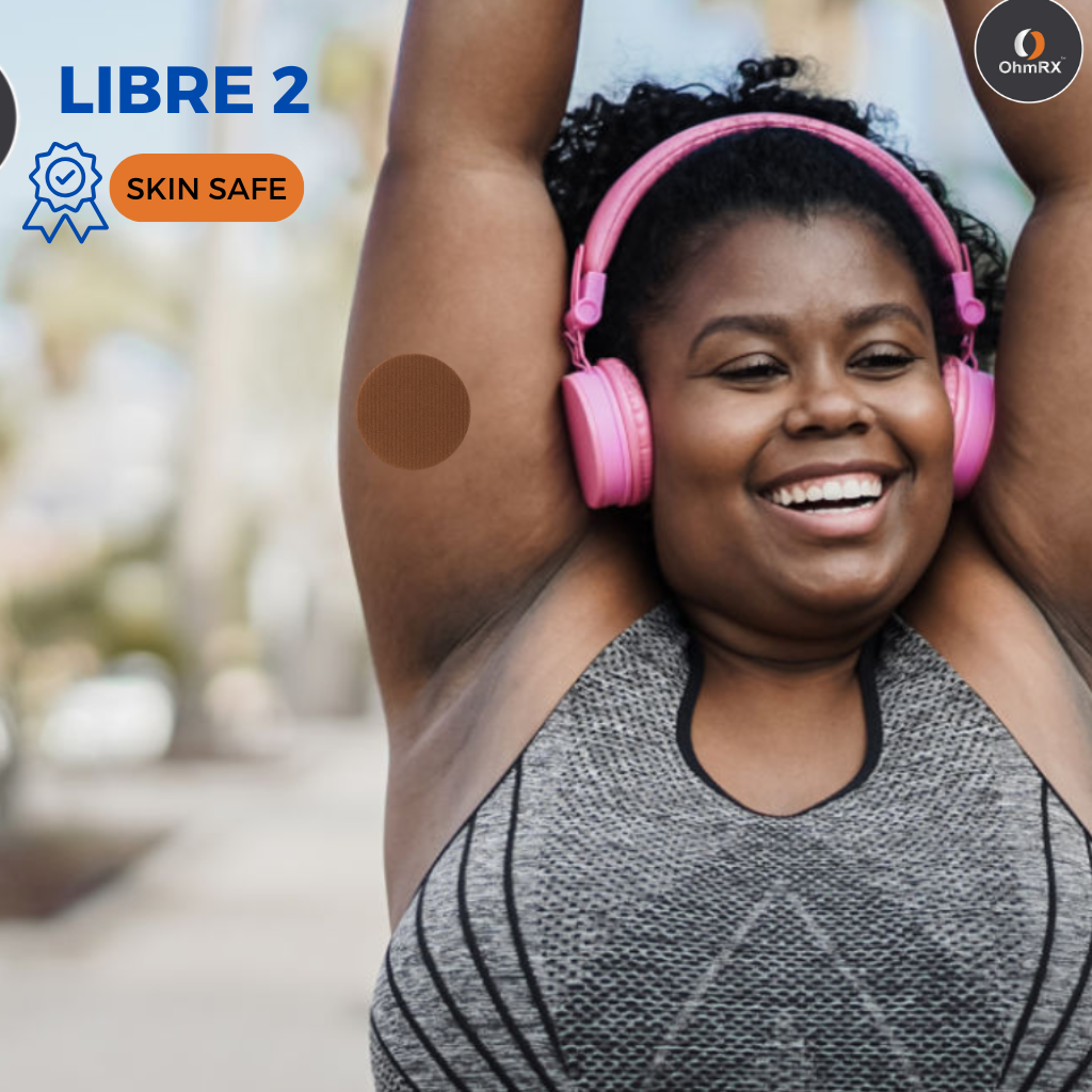 OhmRx Freestyle Libre 2 & Libre 2 Plus Waterproof Sensor Covers - Pack of 25 Brown Adhesive Patches, FSA/HSA Eligible