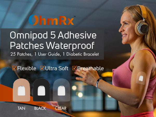 OhmRx Omnipod Adhesive Patches, Waterproof, Pre-Cut, 25-Pack, Multicolor, Large, HSA/FSA Eligible